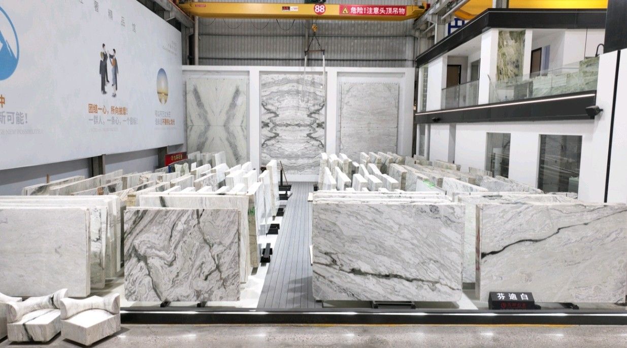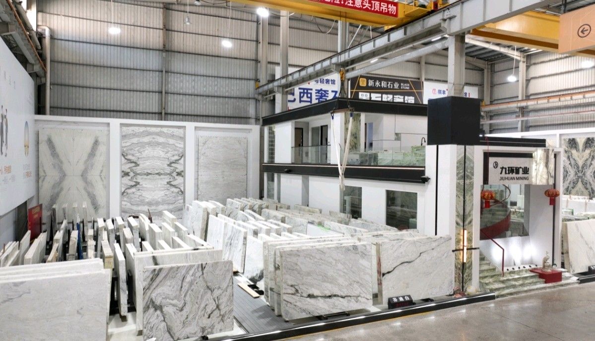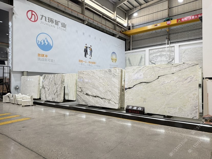 公司創(chuàng)建初期駐點(diǎn)于東升大板市場,隨著市場需求,不斷進(jìn)行戰(zhàn)略布局,2016年駐點(diǎn)高時(shí)大板市場,2017年駐點(diǎn)藝興大板市場,同時(shí)期增加澳磊門店,2018年,九環(huán)增加遠(yuǎn)達(dá)專場,擁有數(shù)百個(gè)架子位,憑借優(yōu)質(zhì)服務(wù)深受客戶認(rèn)可與信賴。2019年,九環(huán)于順盛增加加工點(diǎn),主要生產(chǎn)“水晶木紋”,年產(chǎn)量達(dá)15萬平方米。該年底順勢而上,增加均利廠、新寰宇廠及振南廠三個(gè)石材加工廠,并不斷拓寬市場品類,由原先單一的“水晶木紋”,又增拓“印度藍(lán)金沙”與“土耳其星月白”兩個(gè)大理石品種,年產(chǎn)量接近30萬平方米,公司經(jīng)營得到進(jìn)一步優(yōu)化。2020年九環(huán)石業(yè)進(jìn)軍南翼點(diǎn),新增“卡索灰”及“古堡藍(lán)”兩個(gè)大理石品種,擁有自己的大型礦山開采權(quán),自主開采銷售,產(chǎn)品種類大幅度增加,業(yè)務(wù)領(lǐng)域進(jìn)一步拓展。2021年至今,九環(huán)石業(yè)新增澳盛點(diǎn),新增品種“卡地亞灰”包礦。至此,九環(huán)石業(yè)在“世界石都”水頭戰(zhàn)略版圖囊括了澳盛、新寰宇、東升、遠(yuǎn)達(dá)等駐點(diǎn),具備良好的區(qū)位優(yōu)勢,發(fā)揮著重要的協(xié)同效應(yīng)。\