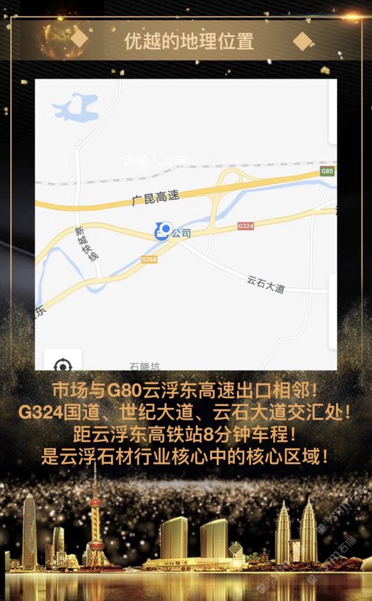 全國聞名‘’石材王國‘’---廣東省云浮市,中心為響應(yīng)市委區(qū)政府‘’產(chǎn)業(yè)轉(zhuǎn)型升級‘’的戰(zhàn)略規(guī)劃,結(jié)合公司發(fā)展,全面啟動升級建設(shè),爭取建設(shè)成為: