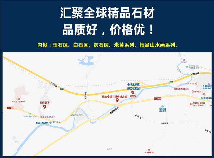 海岸精品石材選材中心屬于海岸石業(yè),中心總面積達50000平方米,位于連接珠三角和內(nèi)陸地區(qū)、大西南區(qū)域的咽喉樞紐。