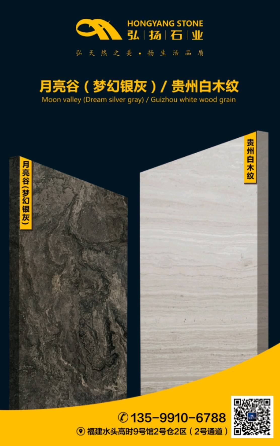 【弘揚石業(yè)】主營:貴州白木紋(各種礦口)、月亮谷(夢幻銀灰)。大量現(xiàn)板、荒料、承接工程單,歡迎新老顧客上門選購!地址:福山工業(yè)區(qū)今典大板市場2號門C區(qū)