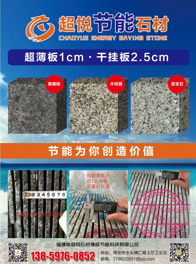 是一家專注于生產(chǎn)、研發(fā)1CM超薄板/2.5CM干掛板的花崗巖研發(fā)型企業(yè)。秉承“用創(chuàng)新的芯、做超薄的板、走節(jié)能的路”的發(fā)展理念,深受國(guó)內(nèi)知名地產(chǎn)公司和幕墻裝飾公司的青睞和認(rèn)可,已與多家知名地產(chǎn)幕墻裝飾公司簽約長(zhǎng)期戰(zhàn)略合作。\\