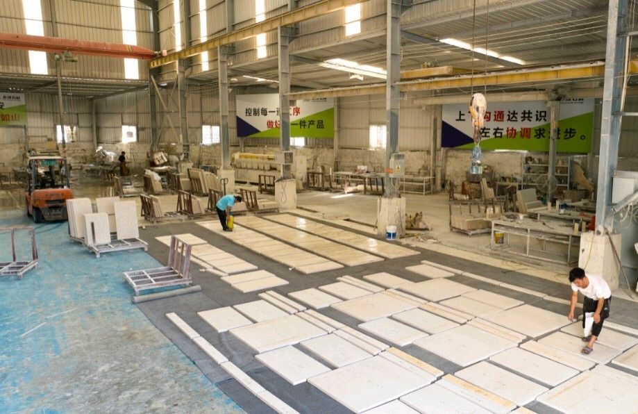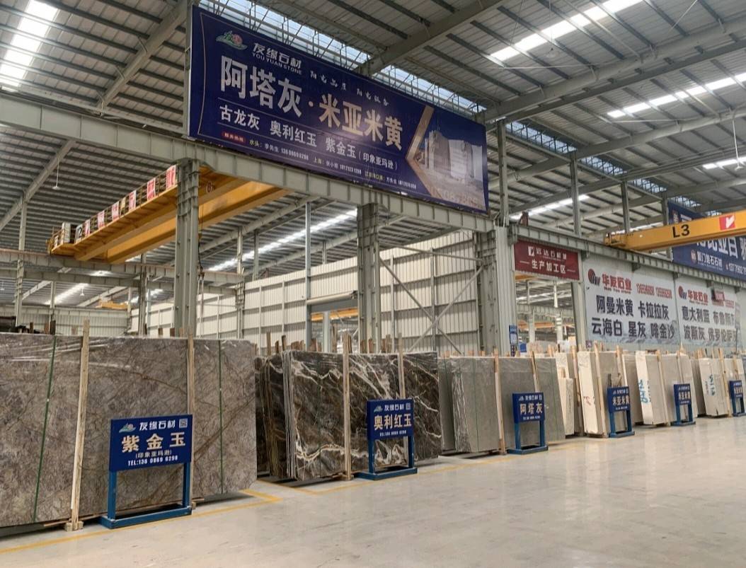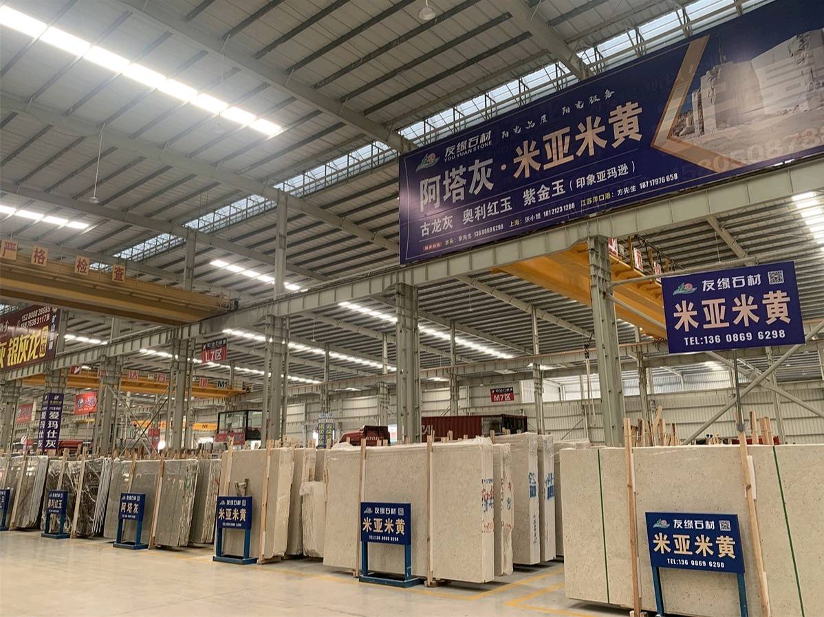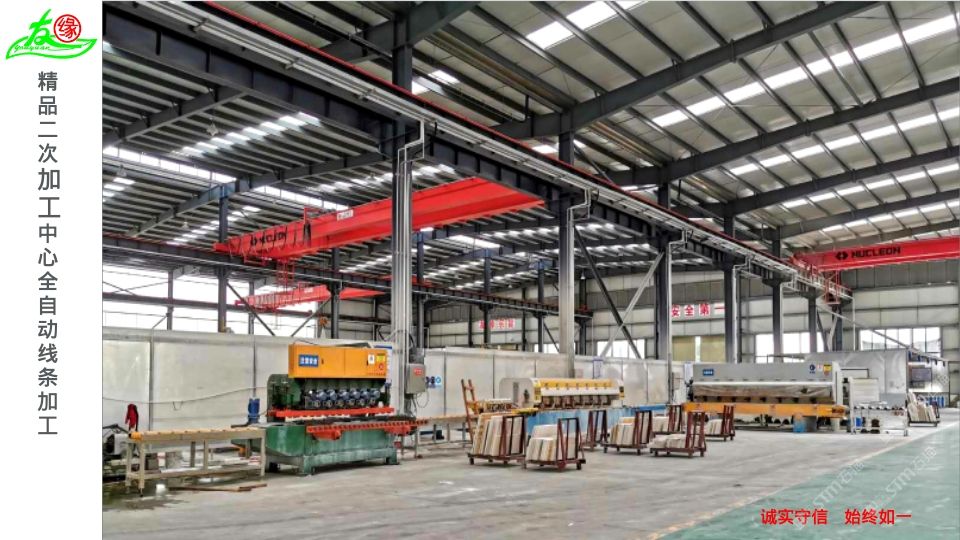 友緣石材精品加工中心、精品倉儲中心位于江蘇省南通市洋口港石材產業(yè)園區(qū),占地面積約28000平方米,生產中心集石材荒料加工,精品大板拋光,工程異形石材加工等一體化生產功能,具有國內外先進加工設備,如鉆石切割機、單邊鋸切割機、繩鋸切割機、全自動板材拋光機、真空烘干流水線設備、紅外線切割機、全自動化線條機、磨邊機、水刀切割機、仿形機等等,具備先進的加工能力和豐富的施工經驗。