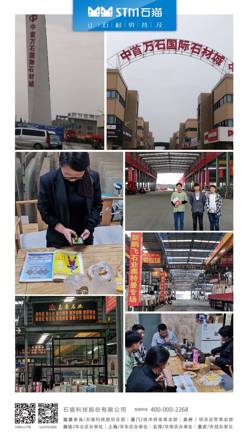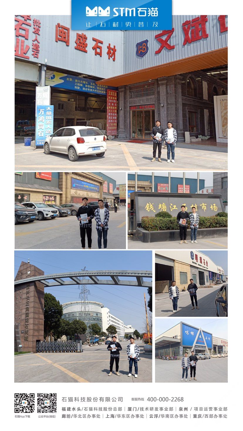 華東分公司先后與華東石材市場合作,包括上海東華環(huán)球石材市場、中首萬石國際石材市場、南通東升產(chǎn)業(yè)園、六泉國際石材市場等,隨后又與華東知名石材企業(yè)南通新景石材有限公司、隆川石材、康典石業(yè)、新鵬飛石業(yè)、宜興隆嘉石業(yè)、新澤海石業(yè)、南通杰恒石業(yè)、珍品玉石合作,打造共贏局面。石貓致力于與各大優(yōu)秀石企共同進步,共同發(fā)展,尋求石材行業(yè)新發(fā)展。