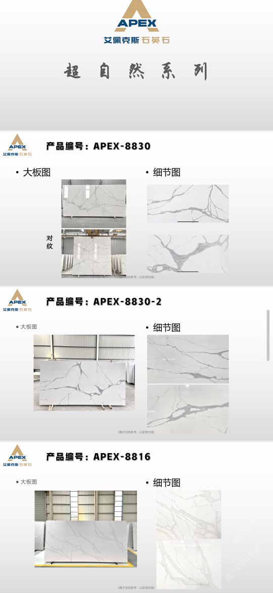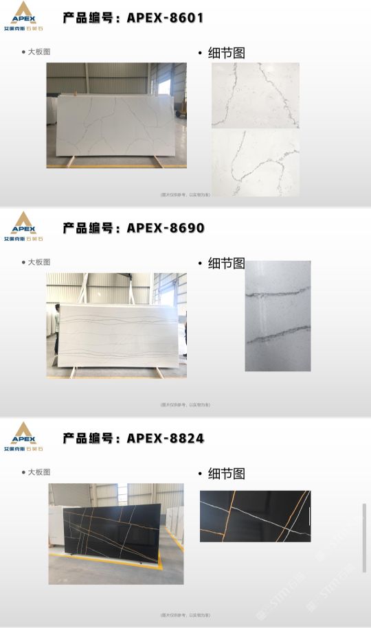 艾佩克斯秉承“精益求精”的開發(fā)理念,在人造石生產(chǎn)工藝上大膽突破,研發(fā)出更具特色的新石代石英石,色彩自然豐富,具有天然石材的質(zhì)感和美麗的表面光澤。產(chǎn)品具有刮不花、不污染、用不舊、燃不著、無輻射等五大特點,可以廣泛用于公共建筑酒店、餐廳、銀行、醫(yī)院、展覽館、實驗室等和家庭裝修廚房臺面、洗臉臺、廚衛(wèi)墻面、餐桌、茶幾、窗臺、門套等領(lǐng)域,是一種無放射污染、可重復(fù)利用環(huán)保、綠色新型建筑室內(nèi)裝飾材料。是的裝飾裝修材料。