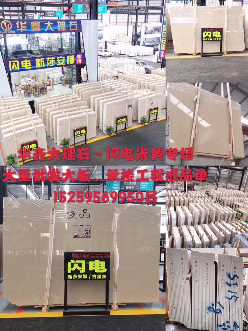 華鑫大理石:主營(yíng):閃電米黃(新莎安娜)、胖子灰(云朵拉灰)、古堡灰、法國(guó)流金,荒料、大板,長(zhǎng)期現(xiàn)貨70000平方,荒料8000噸\