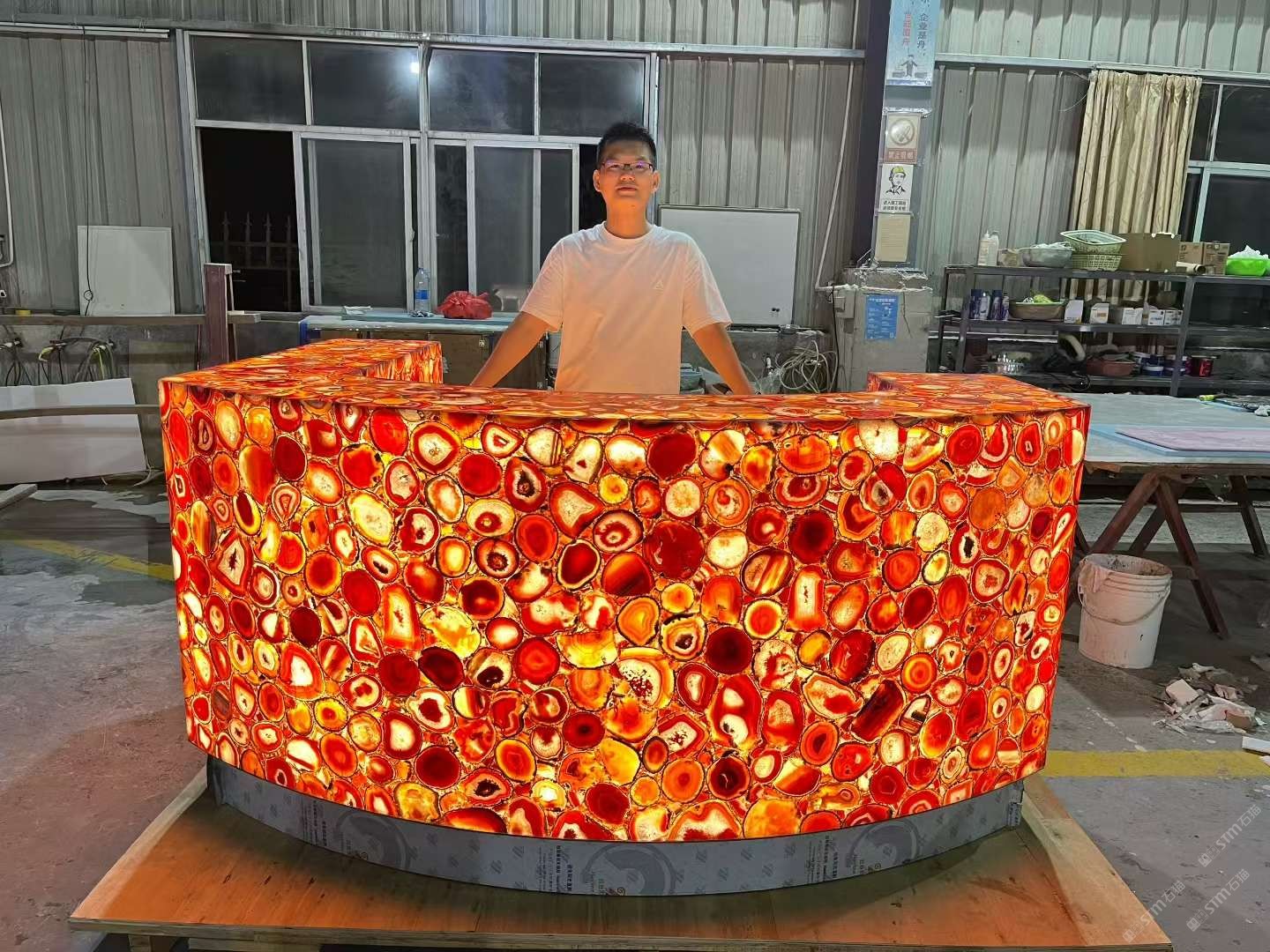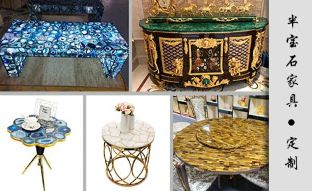 專業(yè)生產純天然高檔半寶石:虎眼石,瑪瑙石,水晶石,孔雀石,景泰藍, 木化石,珍珠母貝馬賽克,寶石貝殼,應用于酒店家具的各類半寶石。具有無輻射,無污染,純天然,不退色,不變色,防水防火等特色,符合現(xiàn)代裝飾的綠色環(huán)保需求。超凡的工藝及設計,被廣泛運用于各類中高檔個性化裝修以及家具臺面,家居配飾,工藝品擺件等等。\