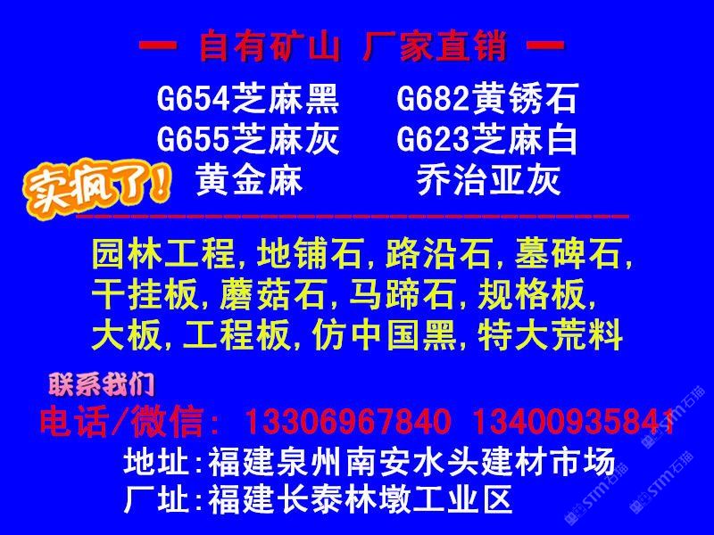 【金華石業(yè)】專門立足于本地豐富的自然資源,擁有成套先進的石材設(shè)備,專業(yè)石材加工技術(shù)人員,掌握先進的石材加工技術(shù),制定了一整套嚴格的質(zhì)量控制體系,品質(zhì)管理嚴格,專業(yè)生產(chǎn)本地石材:G654(芝麻黑),G655(芝麻灰),G682(黃銹石),G603(芝麻白),喬治亞灰,蝦紅、虎皮黃、毛光板,火燒板,踏步板,盲道板,機刨板,荔枝面,路沿石,蘑菇石,花壇石,花崗巖自然面,建筑用塊石,大型門牌石,墓碑石和橋柱橋欄,圓柱,等各種板材和弧形異型加工。