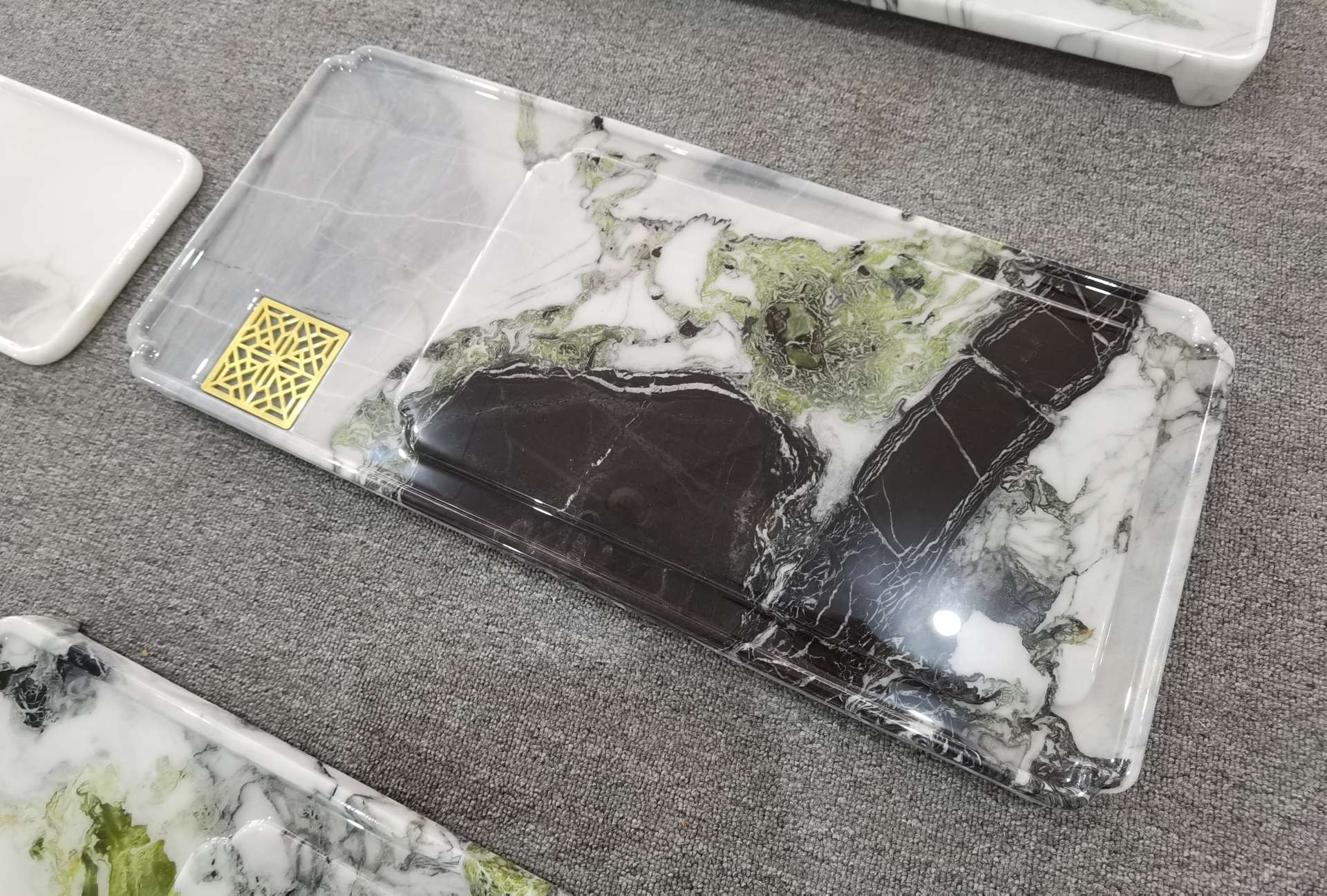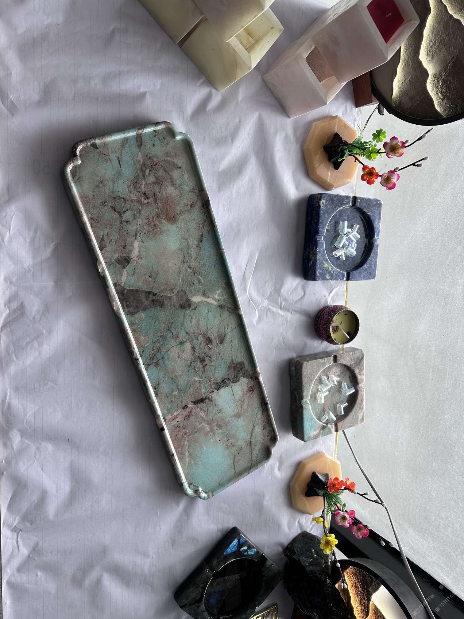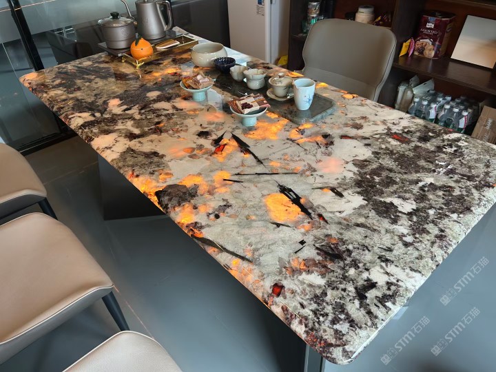 中國水頭國際石材城 奢石家具廠鏡面封釉工藝源頭廠家高端定制茶盤 干泡臺 濕泡茶盤 邊幾 餐桌 茶桌 五金底座搭配15710666636