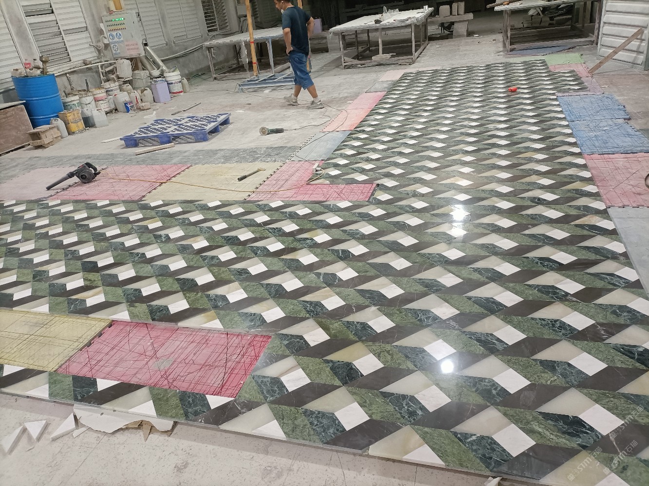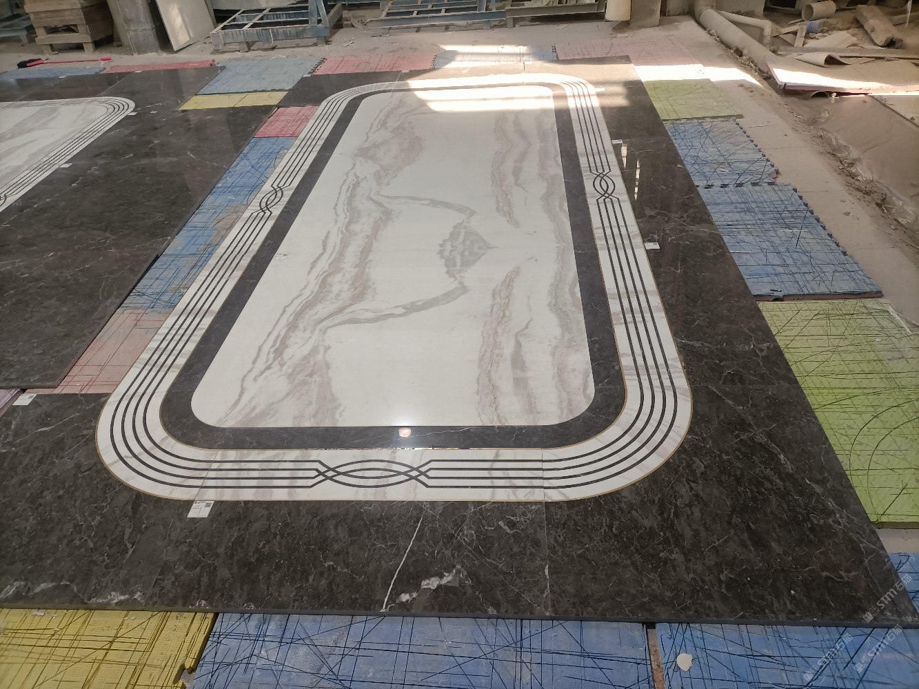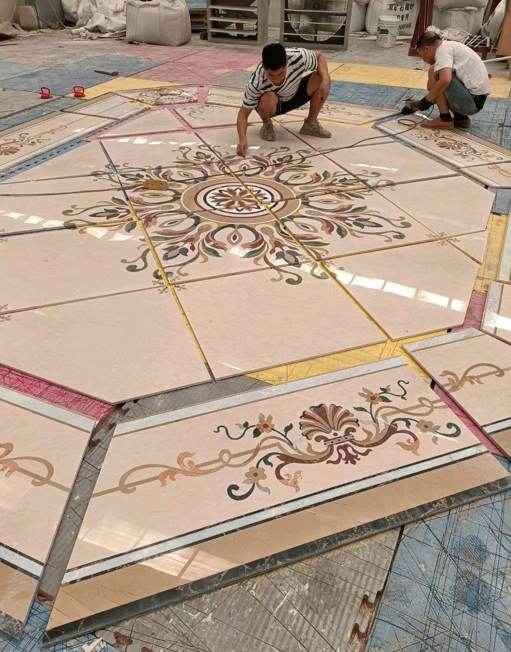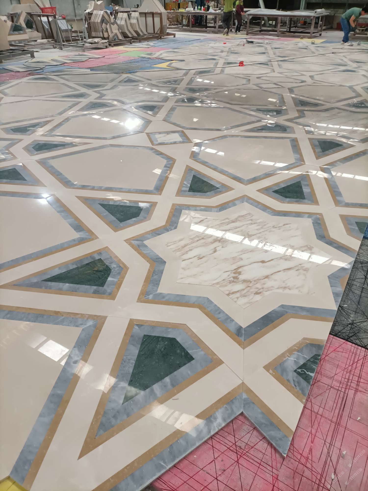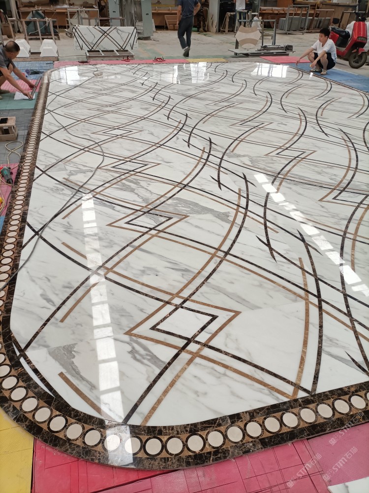 公司水刀拼花生產(chǎn)線:擁有6臺大型水刀設(shè)備,拼花年產(chǎn)量達(dá)10000多平方米。水刀師傅從業(yè)時間久,誠信務(wù)實,質(zhì)量好!所生產(chǎn)的工藝拼圖暢銷全國及世界各地,是別墅建筑至善至美的選擇。