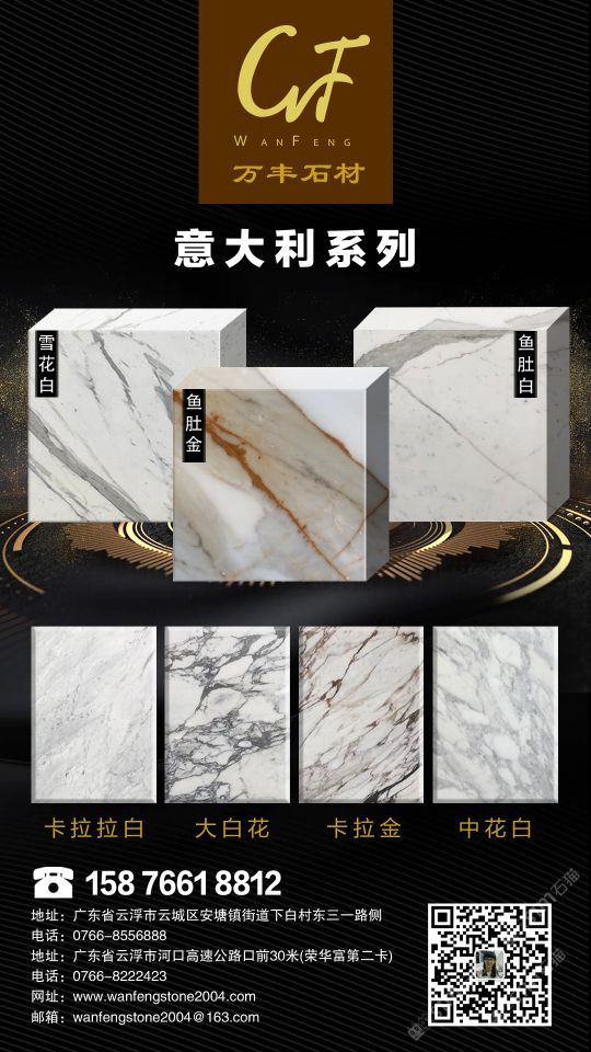 公司主營雪花白、大花白、卡拉拉白、中花白、魚肚白、魚肚金等一系列以白色經(jīng)典,簡約輕奢為理念的意大利進(jìn)口白色大理石。憑著已成立十多年的悠久歷史,現(xiàn)公司擁有優(yōu)秀的銷售、設(shè)計、生產(chǎn)、售后團(tuán)隊,以及多年來與客戶保持良好的緊密合作關(guān)系,產(chǎn)品已遠(yuǎn)銷泰國、加拿大、美國、中東等國內(nèi)外市場,產(chǎn)品質(zhì)量與服務(wù)也獲得一致好評。\