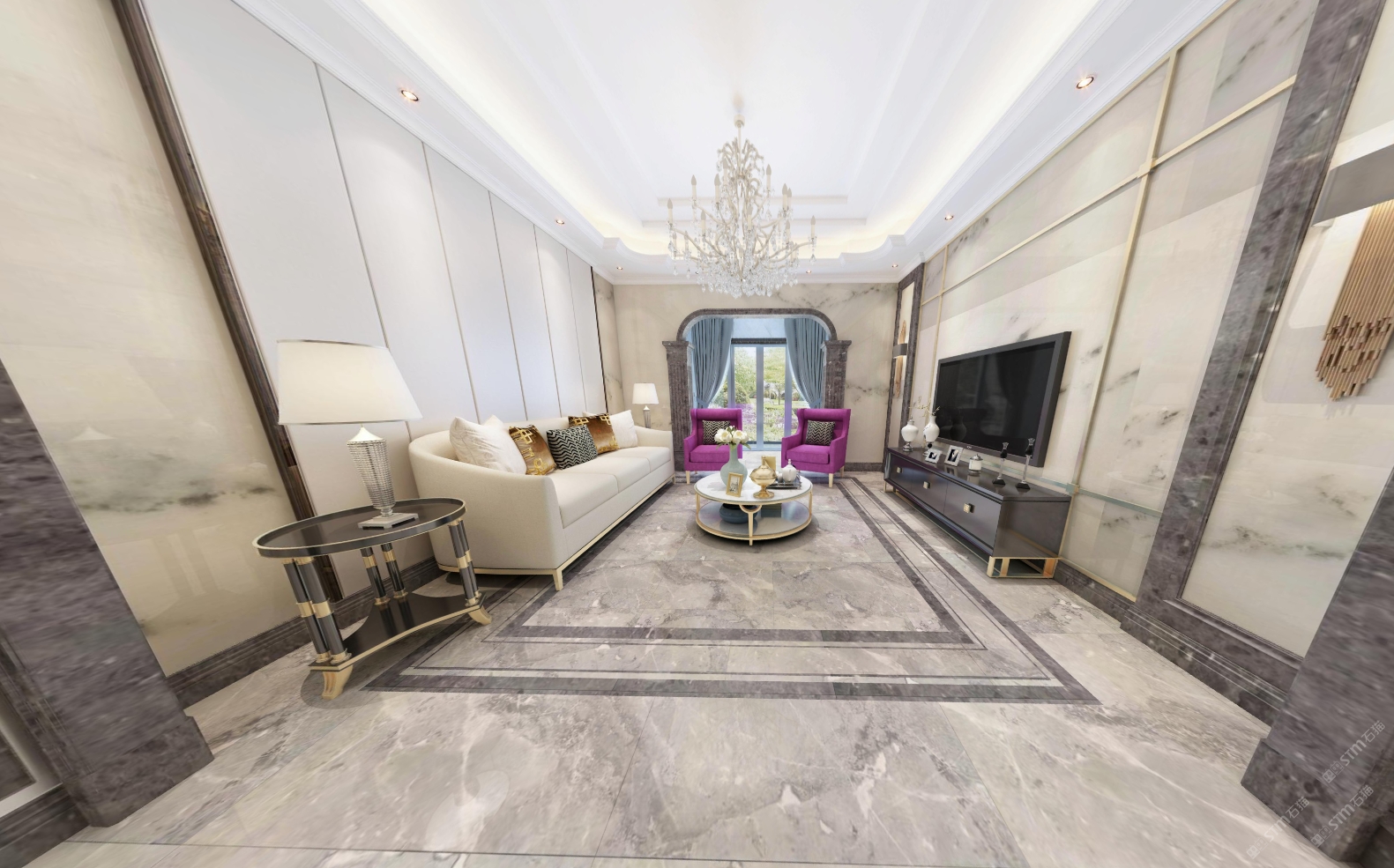 發(fā)布信息: 酒店大堂地面和精裝樓梯,還有波打線、門套配色
