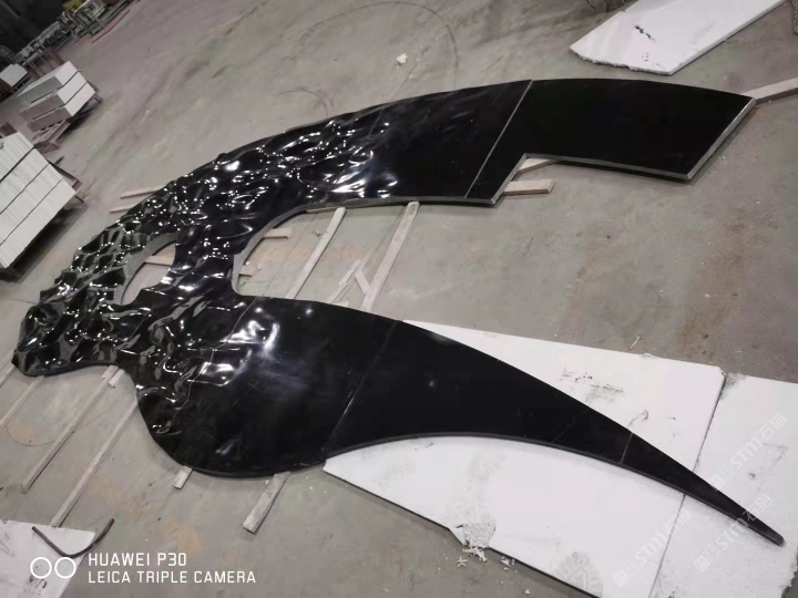 黑白根水波紋、液態(tài)、創(chuàng)意雕刻、外墻、水景雕刻、地雕