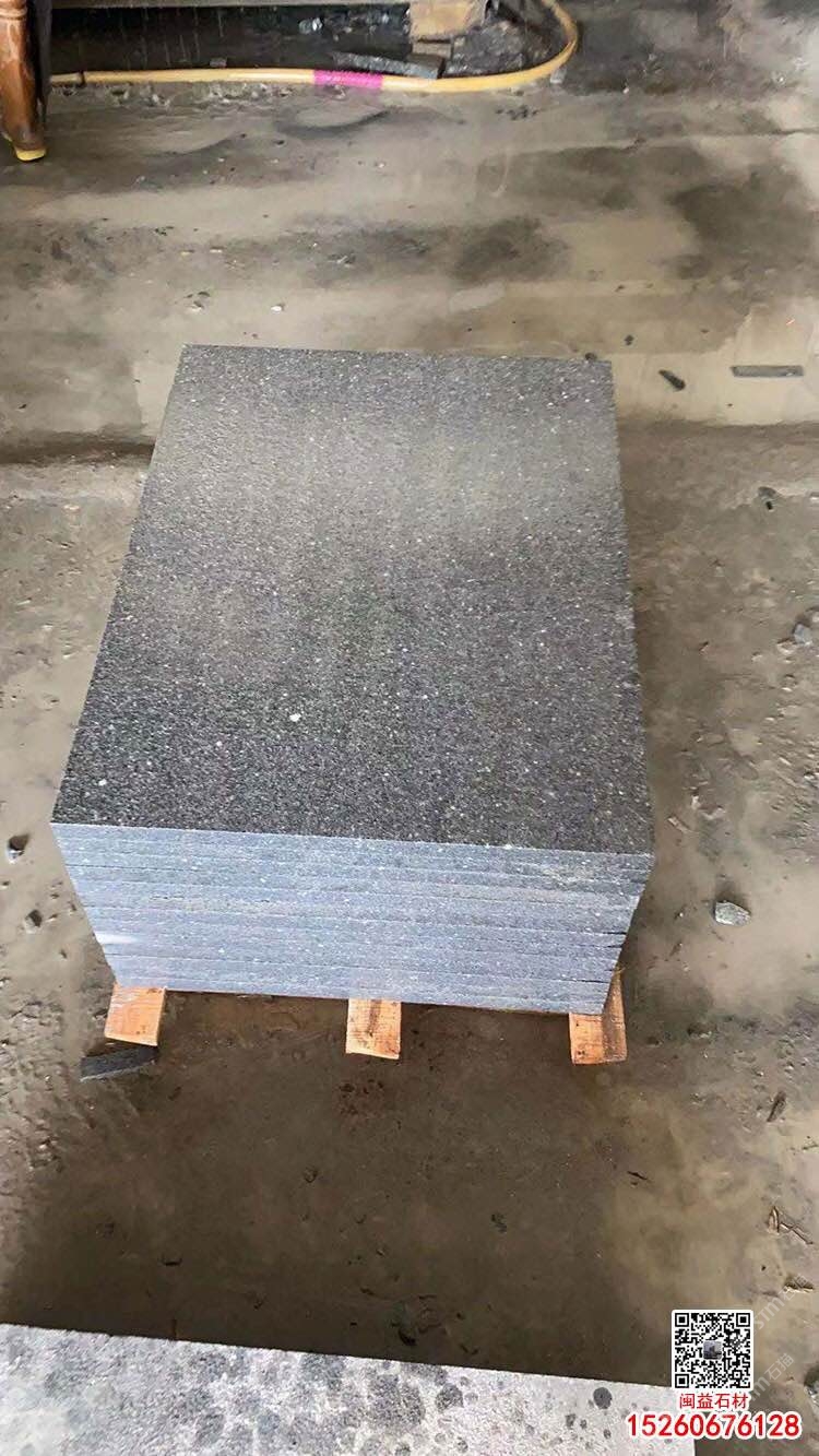 芝麻黑石材深灰麻G654盲道石水溝蓋板蘑菇石等加工