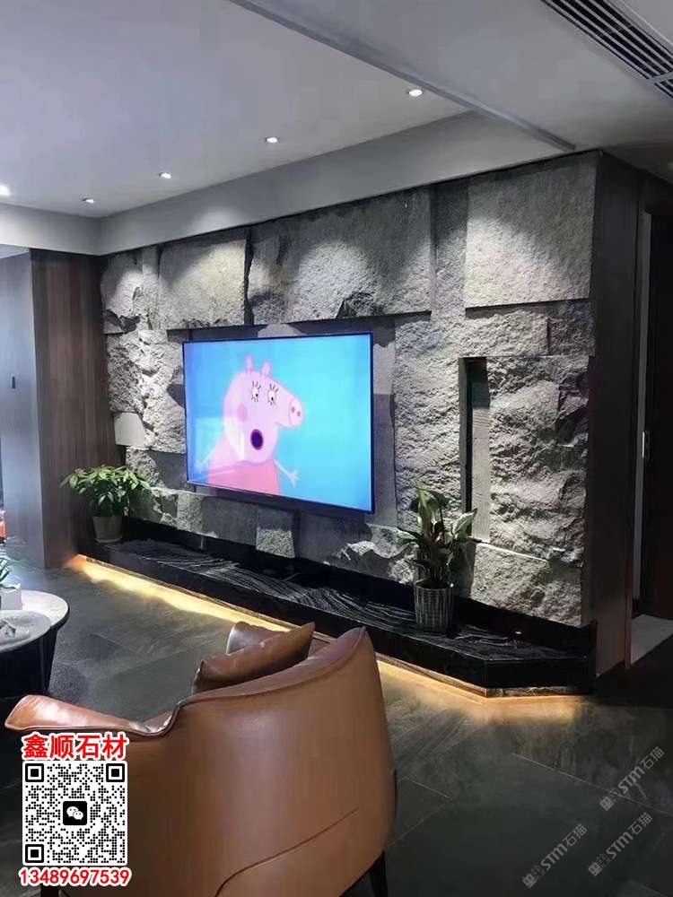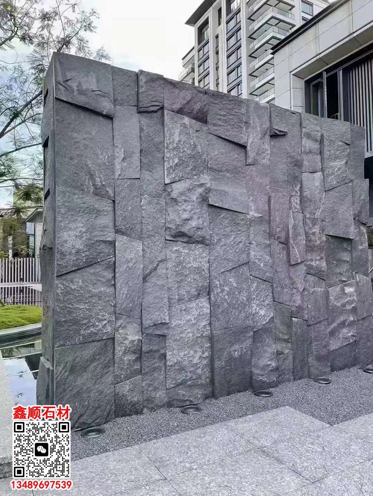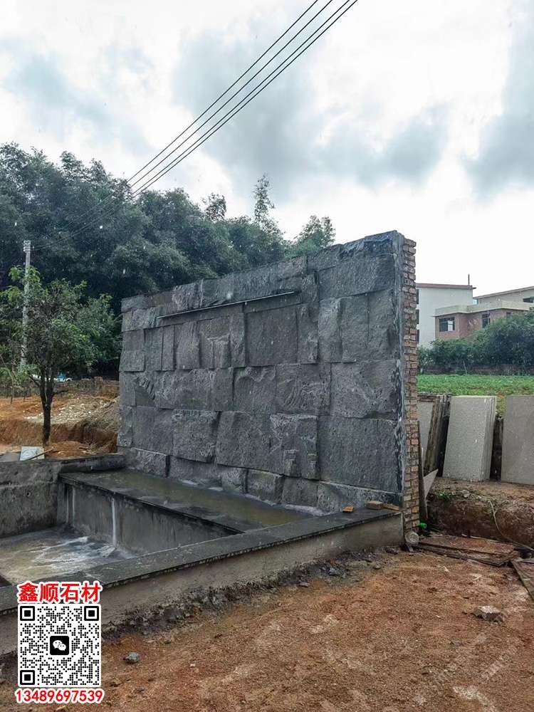 芝麻黑自然面背景墻流水石水景石材流水幕墻石皮背景墻
