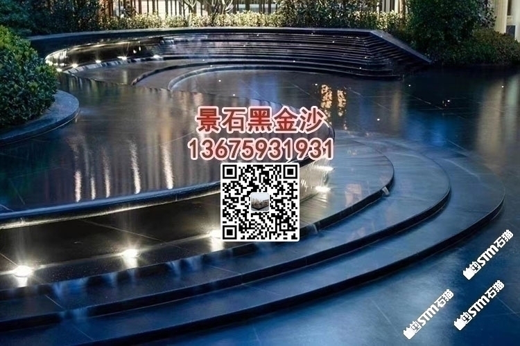 印度黑金沙花崗巖水池水景工程水池幕墻干掛背景墻定制