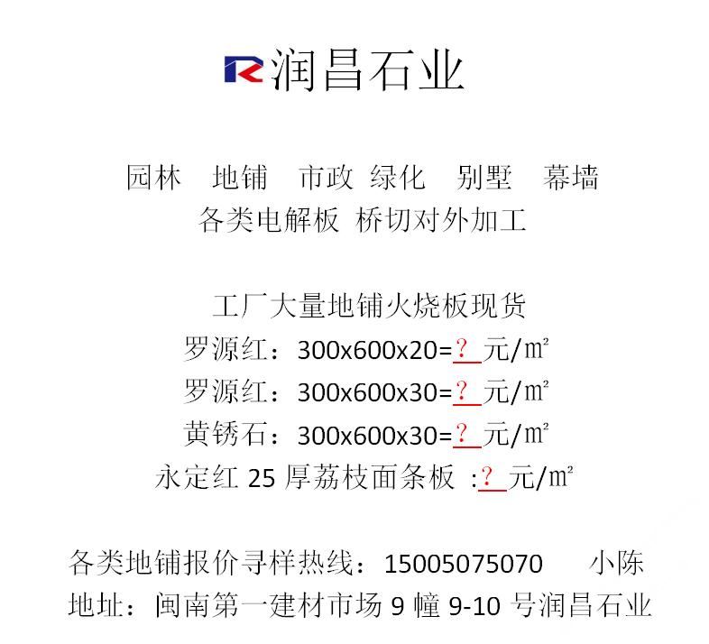 發(fā)布信息: 羅源紅火燒面 水頭工廠大量300?600?30 300?600?20現(xiàn)貨出售 價(jià)格優(yōu)惠歡迎來(lái)電詢(xún)價(jià)