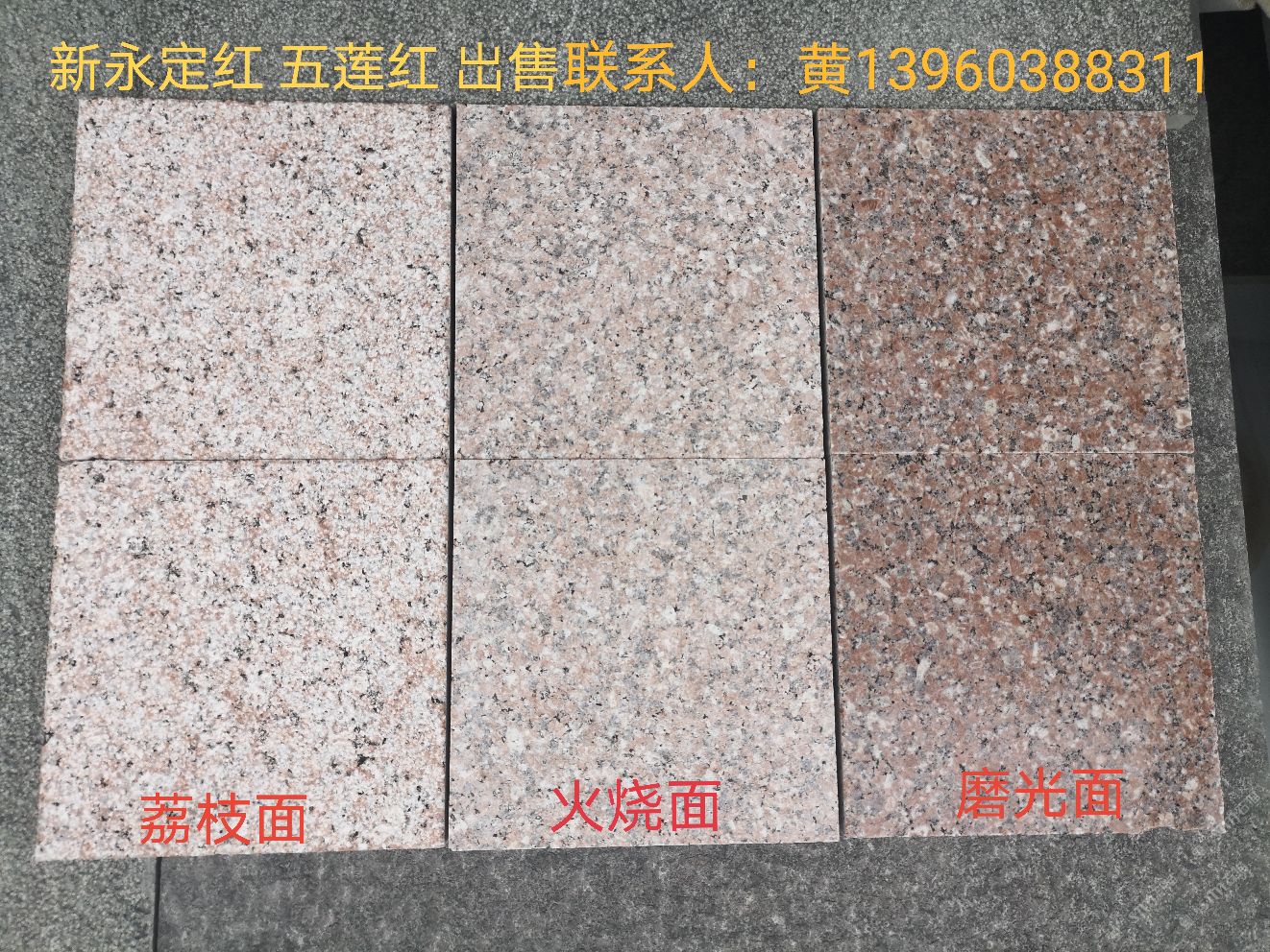 發(fā)布信息: 《金豐石業(yè)》大量現(xiàn)貨芝麻白 芝麻灰 燒面600X300X30 出售:新永定 五蓮紅 福建青 墨綠青 橄欖綠 橄欖青 萬源青 達州青 浪淘沙 福壽紅 荒料 自有礦山 主營:雕刻 欄桿 光面 荔枝面 燒面 磨菇面 自然面 小方塊 路沿石 承接:各種花崗巖大理石工程單 地址:水頭鎮(zhèn)下店村公路邊 聯(lián)系人黃先生13960388311