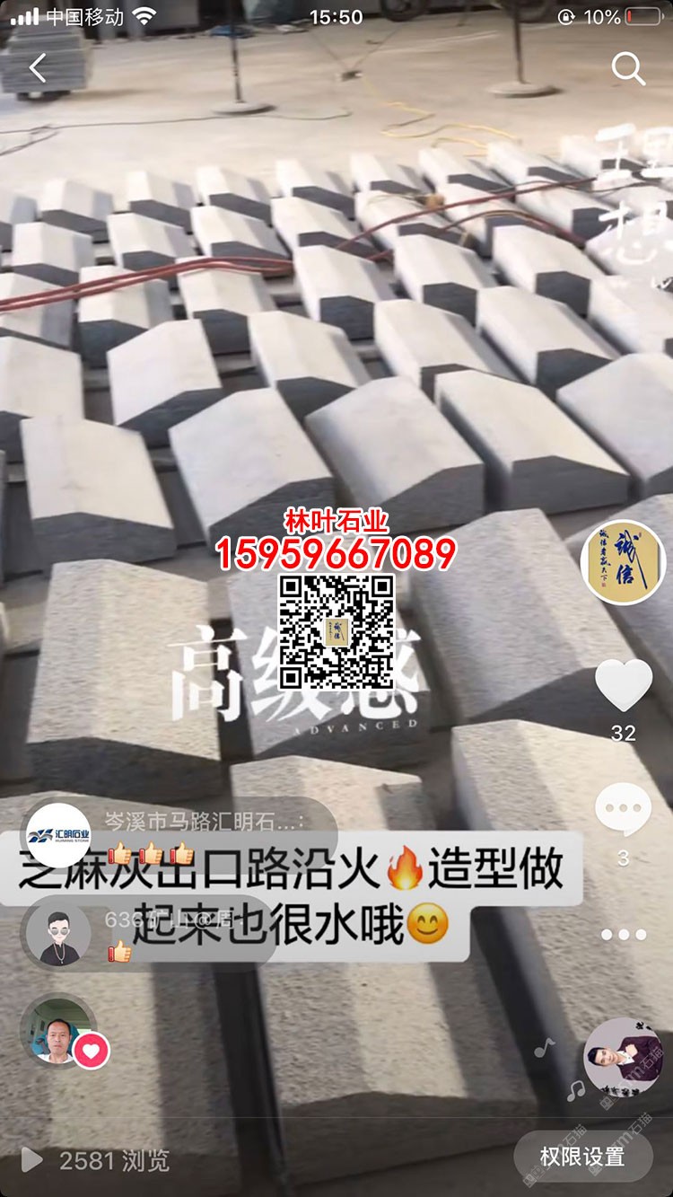 發(fā)布信息: 林葉石業(yè)長泰工廠(林總15959667089微信同號)專業(yè)老礦芝麻黑與芝麻灰供應(yīng)商,專注于出口及高品質(zhì)工程國內(nèi)外園林景觀石材;主營:老礦芝麻黑墓碑石、正礦吳田山G654窗臺板、G654芝麻黑牛鼻子、芝麻黑石材游泳池蓋板、老礦芝麻黑出口高品質(zhì)工程板、老礦654小方塊馬蹄石、芝麻灰G655路沿石、深灰麻石材、中灰麻石材、深灰色花崗巖、黑色麻石等光面、燒面、荔枝面、墓碑石材、地鋪石材、園林景觀工程、路沿石材等;林葉石業(yè)寧德工廠(葉總18050650127微信同號)專業(yè)新礦芝麻黑寧德小藍寶,廠礦一體,體格優(yōu)惠,真誠希望您的光臨與合作?。暶魃蟼鳟a(chǎn)品圖片均是本廠加工生產(chǎn))