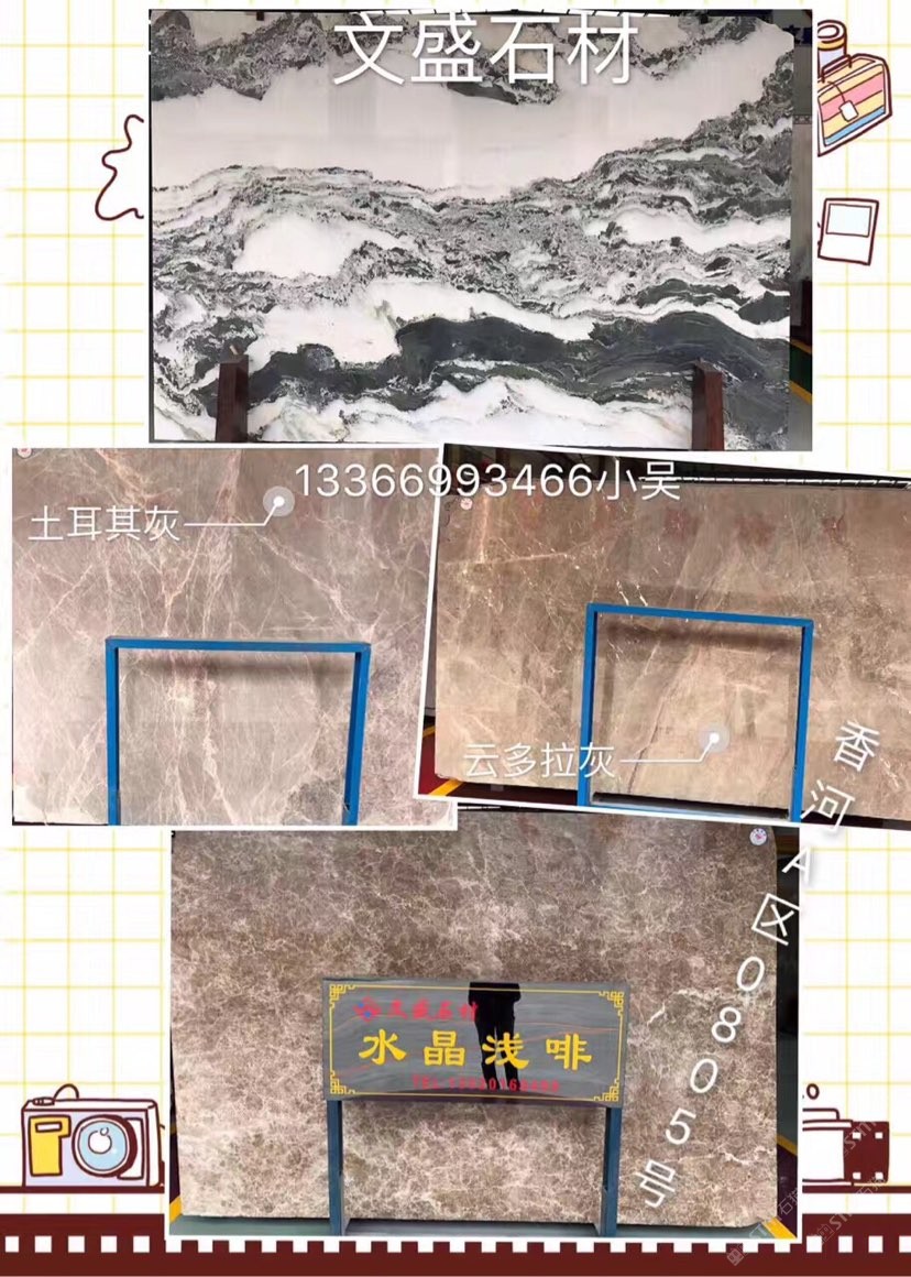 發(fā)布信息: 文盛石材主營:水晶淺啡,云多拉灰,閃電米黃,阿波羅,索菲特金,奧特曼,灰姑娘,爵士白,拿鐵灰,塞浦路斯灰,土耳其灰,。 聯(lián)系人:吳志煌。 電話 :13366993466。 地址:香河石材城A區(qū)0805號