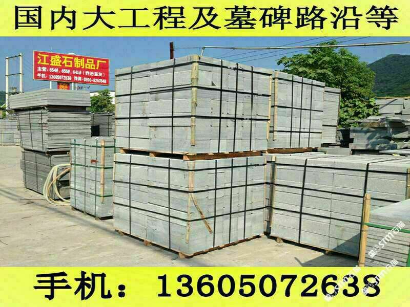 發(fā)布信息: 長泰縣江盛石制品廠(王先生 手機微信:13605072638)位于福建長泰的石材之鄉(xiāng)--林墩后爐工業(yè)區(qū),擁有自己大型的G654礦山,在天津與杭州有經(jīng)銷部,是一家集礦山開采、生產(chǎn)加工及經(jīng)銷部為一體的專業(yè)石制品供應商.距廈門市60公里,離郭坑火車站僅40公里,不論是汽運,船運或者鐵路運輸都十分便捷. 公司主要經(jīng)營G654芝麻黑,G655#,G614#,G603#,銹石等磨光板、火燒板、荔枝面、龍眼面、蘑菇石、機刨石、路沿石、滾石、盲道石及異形加工。G654#石材被廣泛用于鋪設廣場、公園、街道、停車場等場所,具有防滑、抗酸堿、耐磨、耐壓等優(yōu)點,可拼鋪成各種幾何圖案,美觀實用,符合現(xiàn)代建筑人與自然相結(jié)合的審美情趣,是工程建設、室內(nèi)外裝飾的建材,還可根據(jù)客戶需求加工石雕、影雕、碑石、墓石等工藝品。產(chǎn)品遠銷香港、臺灣、日本、東南亞、歐洲等地。北京東方廣場建筑群、上海世紀大道、廈門國際會展中心地面工程等均采用了G654#等石材產(chǎn)品。 公司自創(chuàng)建以來,秉承重合同守信用,質(zhì)優(yōu)價廉的經(jīng)營理念,視客戶的需求為我的需求,客戶的滿意為我的滿意,贏得了客戶的一致好評.真誠歡迎新老客戶來電來函洽談.王先生聯(lián)系手機:13605072638