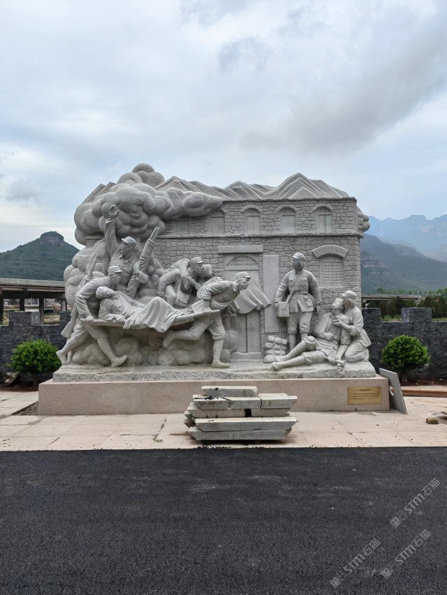 石雕 芝麻白紅色主題雕塑。