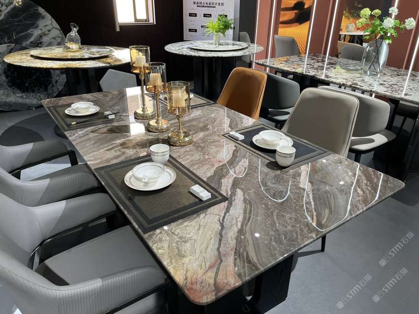 實木結(jié)合五金奢石餐桌:香格里拉#水頭奢石家居中心