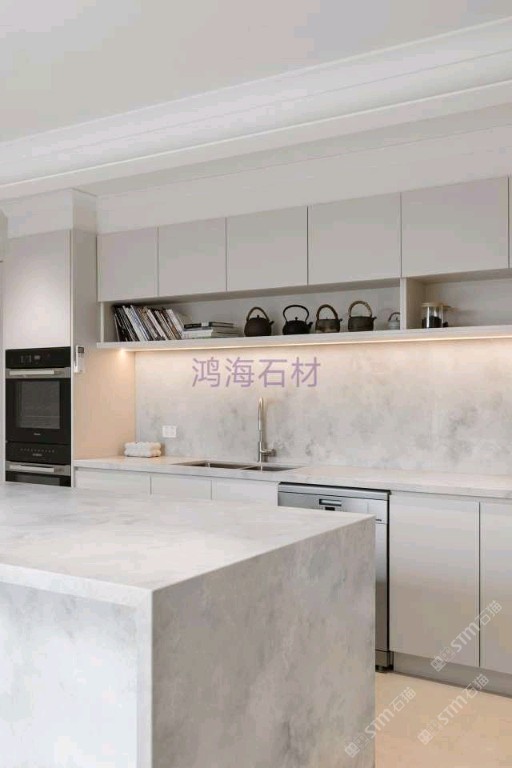 鴻海石英石廚房臺(tái)面墻面應(yīng)用