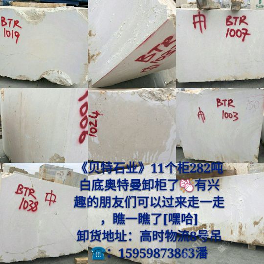 發(fā)布信息: 新到白底奧特曼荒料,卸于高時物流8號吊,歡迎各位領(lǐng)導前來圍觀選購!?:15959873863潘