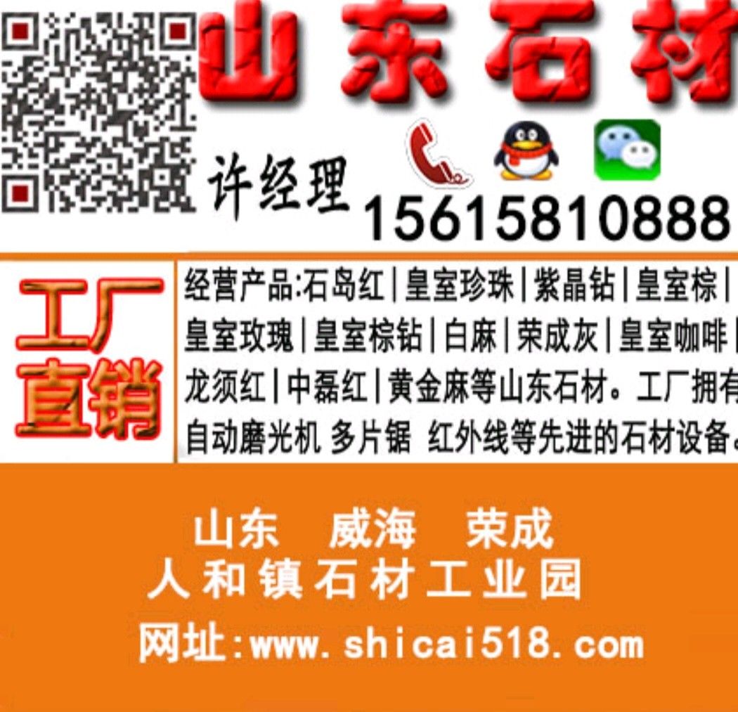 發(fā)布信息: 榮成蓬昊石材有限公司位于山東榮成市人和鎮(zhèn)石材園,占地2萬平方米,公司成立于2002年注冊資金2000萬元.固定資產(chǎn)1000多萬元。主營石島紅系列. 皇室珍珠.國產(chǎn)皇室 啡.皇室玫瑰.灰棕麻.皇室棕鉆.紫晶鉆 .榮成灰.龍須紅,中國棕等石材。公司設(shè)備先進,在本地率先擁有10臺組合鋸.超大鋸.1套全自動磨光機.自動荔枝機,紅外線自動切邊機7臺.普通切邊機2臺.仿形機.自動磨邊機等設(shè)備。能夠生產(chǎn)超大板.超薄板. 規(guī)格板.毛光板.火燒板.拋光面.荔枝面.各種線條.異型。月產(chǎn)量1.5萬--2萬平方米? 公司自有礦山充分利用資源優(yōu)勢,憑借精良的加工技術(shù),獨到的分色方式,產(chǎn)品長期出口韓國、日本、歐洲、中東、港澳等國家和地區(qū),隨著經(jīng)濟發(fā)展被國內(nèi)一些大廈、廣場、小區(qū)、別墅、會所等各種建筑所選用,并深受客戶好評。