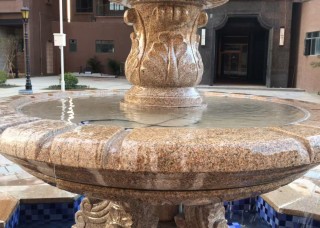 銹石,黃金麻,卡麥噴泉花缽風(fēng)水石花盆欄桿石雕刻