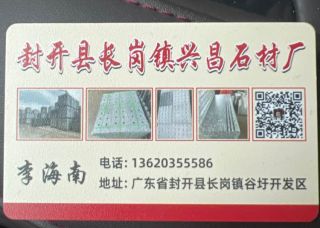 林加利石材主營(yíng)產(chǎn)品:廣東芝麻灰(封開花),封開花,杏花紅,路沿石/花壇石,外裝樓梯板(花崗巖臺(tái)階),阻車石(擋車石),地鋪石(盲人石)企業(yè)地址:廣東肇慶封開縣谷圩開發(fā)區(qū)