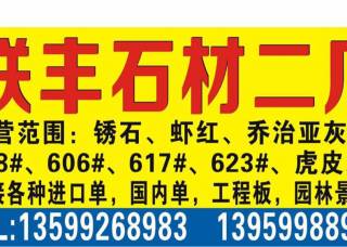 聯(lián)豐石材二廠主營產品:G681,銹石,G606(副礦),漳浦紅G648,漳浦蝦紅,黃銹石,古典灰麻,港尾銹石(荔枝面),港尾銹石(光面),漳浦銹(荔枝面),漳浦銹(火燒面),黃金鉆1,芝麻白G623,白麻企業(yè)地址:福建南安石井鎮(zhèn)聯(lián)豐埭頭高速橋旁。