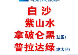 聯(lián)超石業(yè)主營(yíng)產(chǎn)品:白沙(光面),白沙米黃,白沙米黃(中細(xì)沙),紫山水,普拉達(dá)綠,拿破侖黑(法國(guó)),寶格麗黑(法國(guó))企業(yè)地址:福建泉州水頭鎮(zhèn)澳盛2號(hào)門(mén)1棟4區(qū)