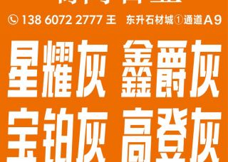 磊商石業(yè)主營產(chǎn)品:星耀灰(鑫爵礦),高登灰(柬埔寨),星耀灰,灰太狼,灰太狼(小花),灰太狼(中花),灰太狼(黑線),灰太狼(大花),星爵灰,魚肚灰(德保礦),鑫爵灰,奢豪灰,時(shí)尚灰,紐西蘭灰,古堡灰1,古堡灰10,古堡灰12,古堡灰企業(yè)地址:福建泉州南安市水頭澳盛大板市場1號門10A棟2-4區(qū)
